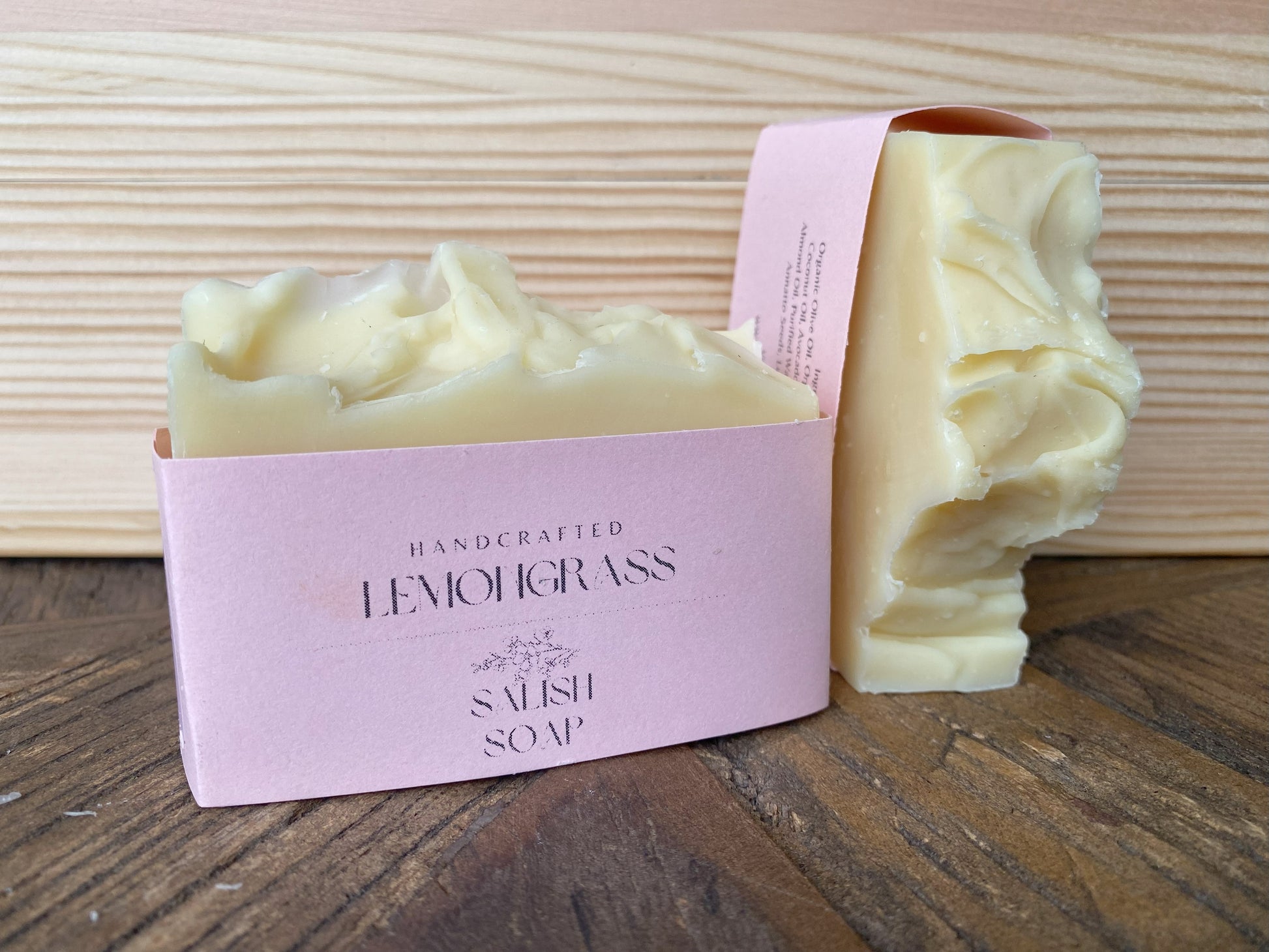 Pure nourishing lemongrass soap with extra rich shea butter and lemongrass essential oil. The scent is fresh and clean while the ingredients form a lovely lather and sooth the skin. Lemongrass is my second most popular soap.
