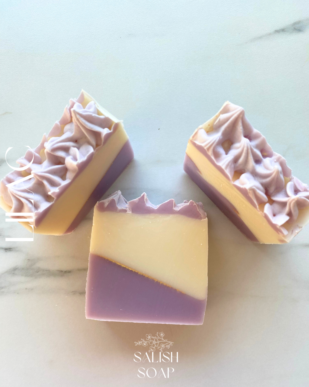 A beautiful new soap bar that has the lovely scent of lilacs. Cascading with purples and creamy white it appeals to all senses...like you are walking through a garden in the spring when they are in bloom.