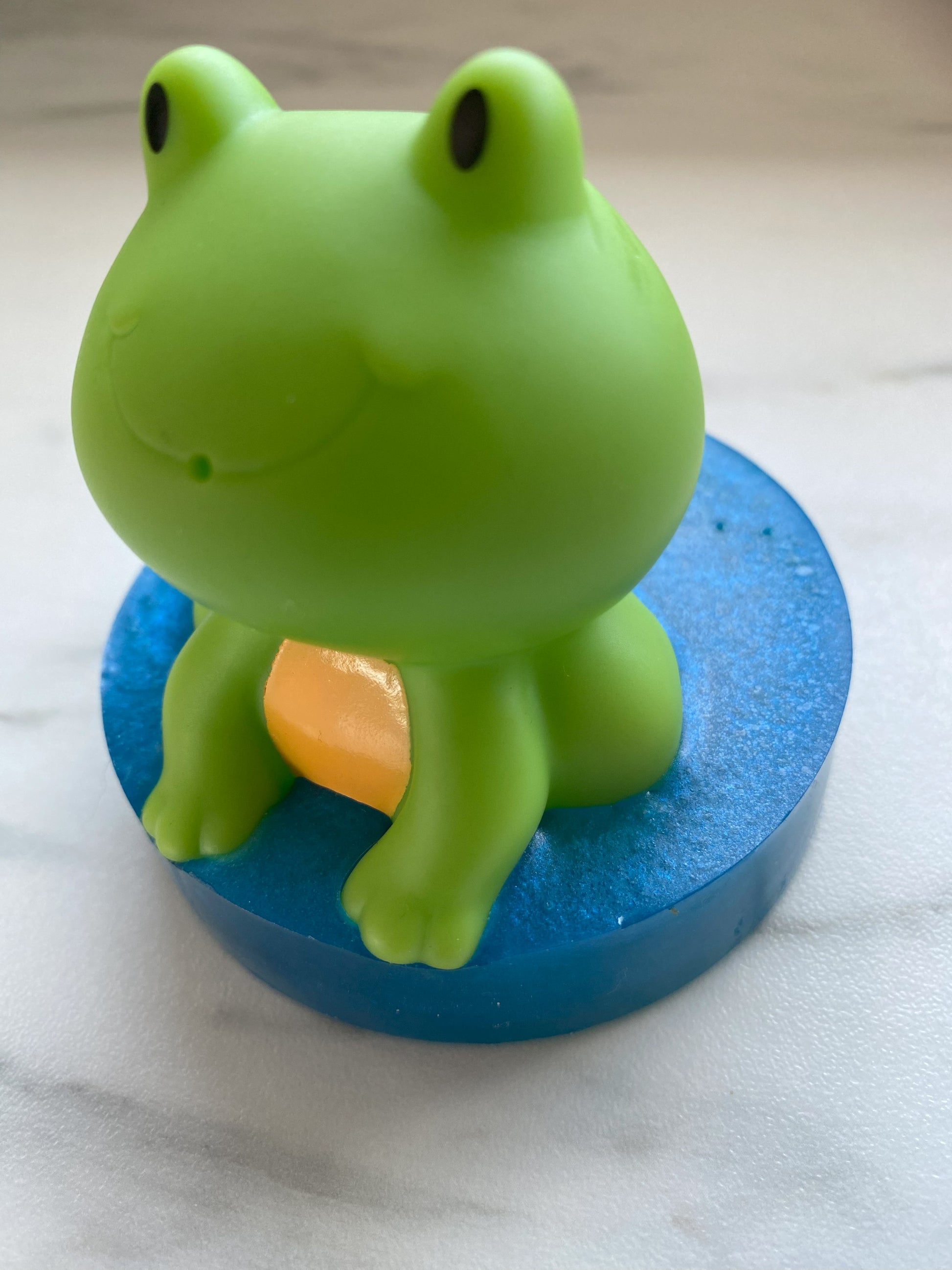 The toy on top is not soap but is embedded in soap so as kids use up the soap during bath time, they get a toy to play with. The Munchkin toy vendor "tests to meet or exceed the safety standards for our industry as established by both the Consumer Product Safety Commission (CPSC) and American Society for Testing and Materials (ASTM) International".